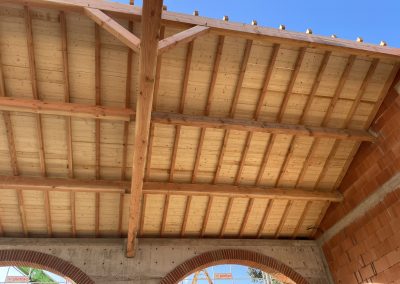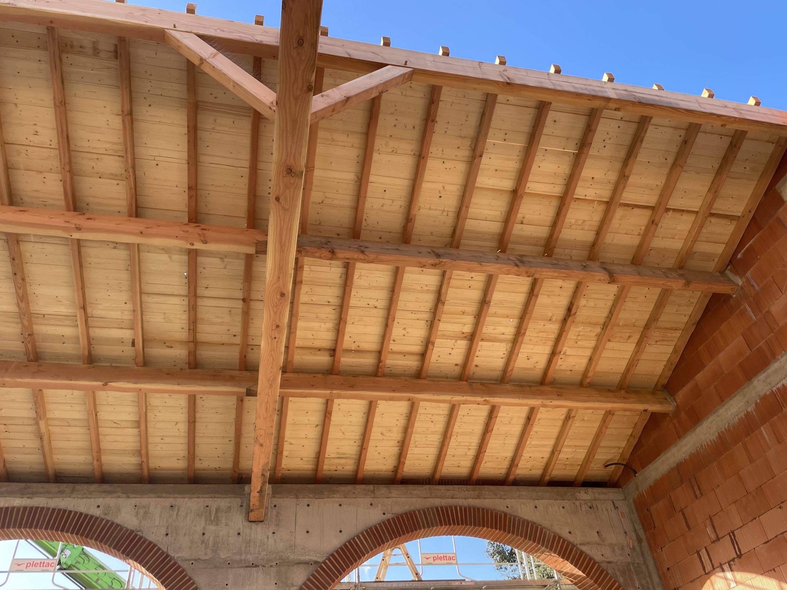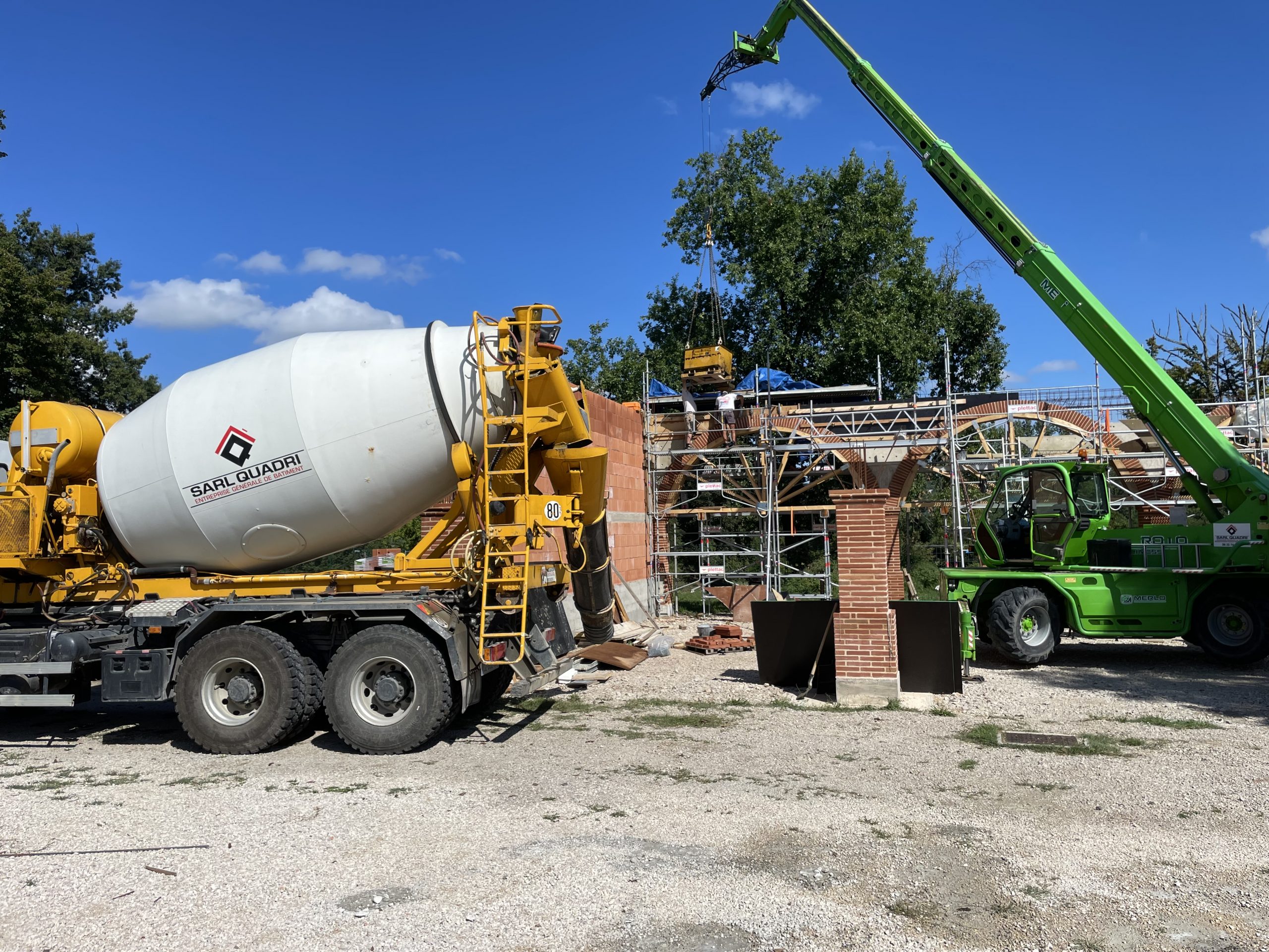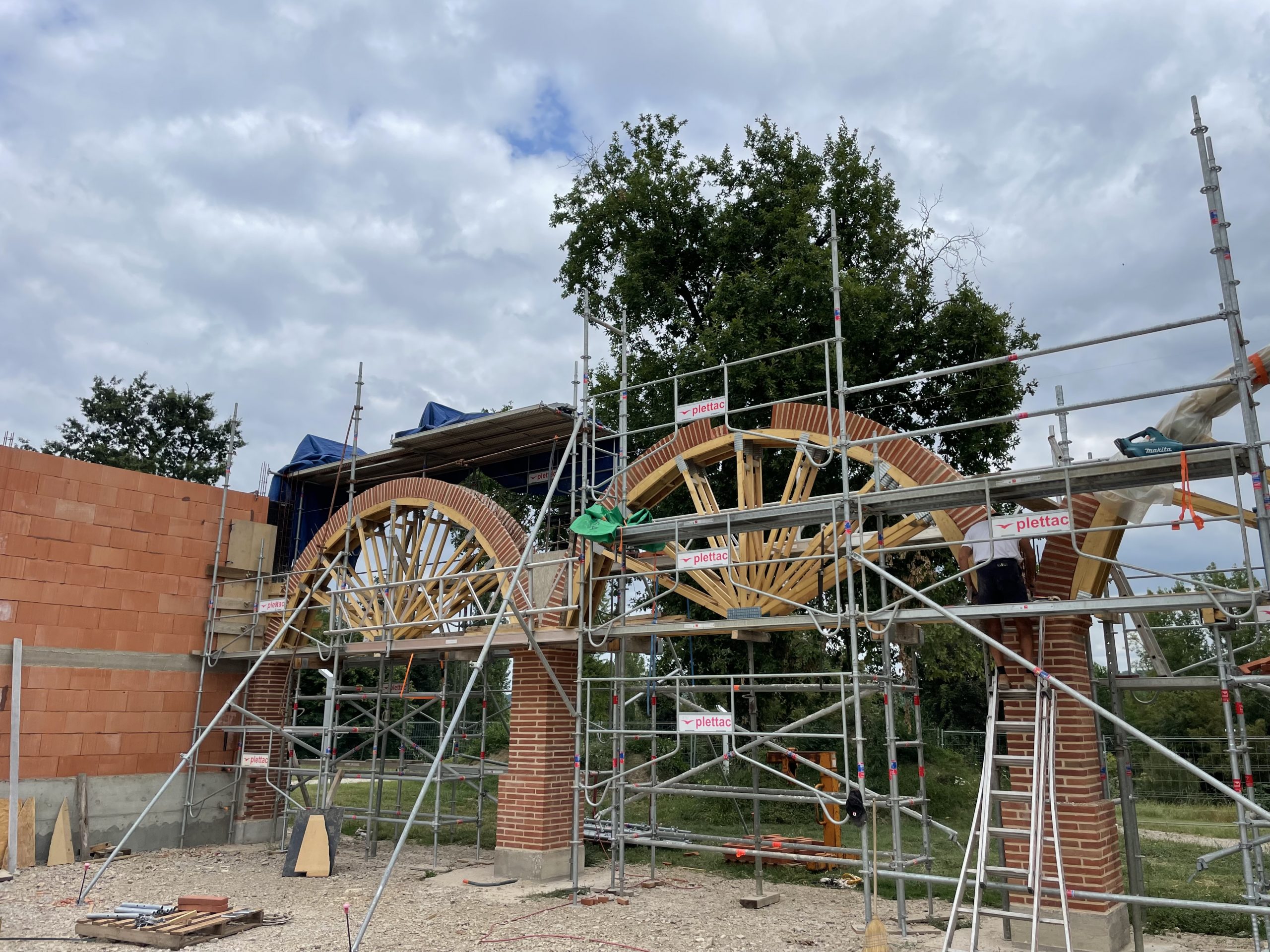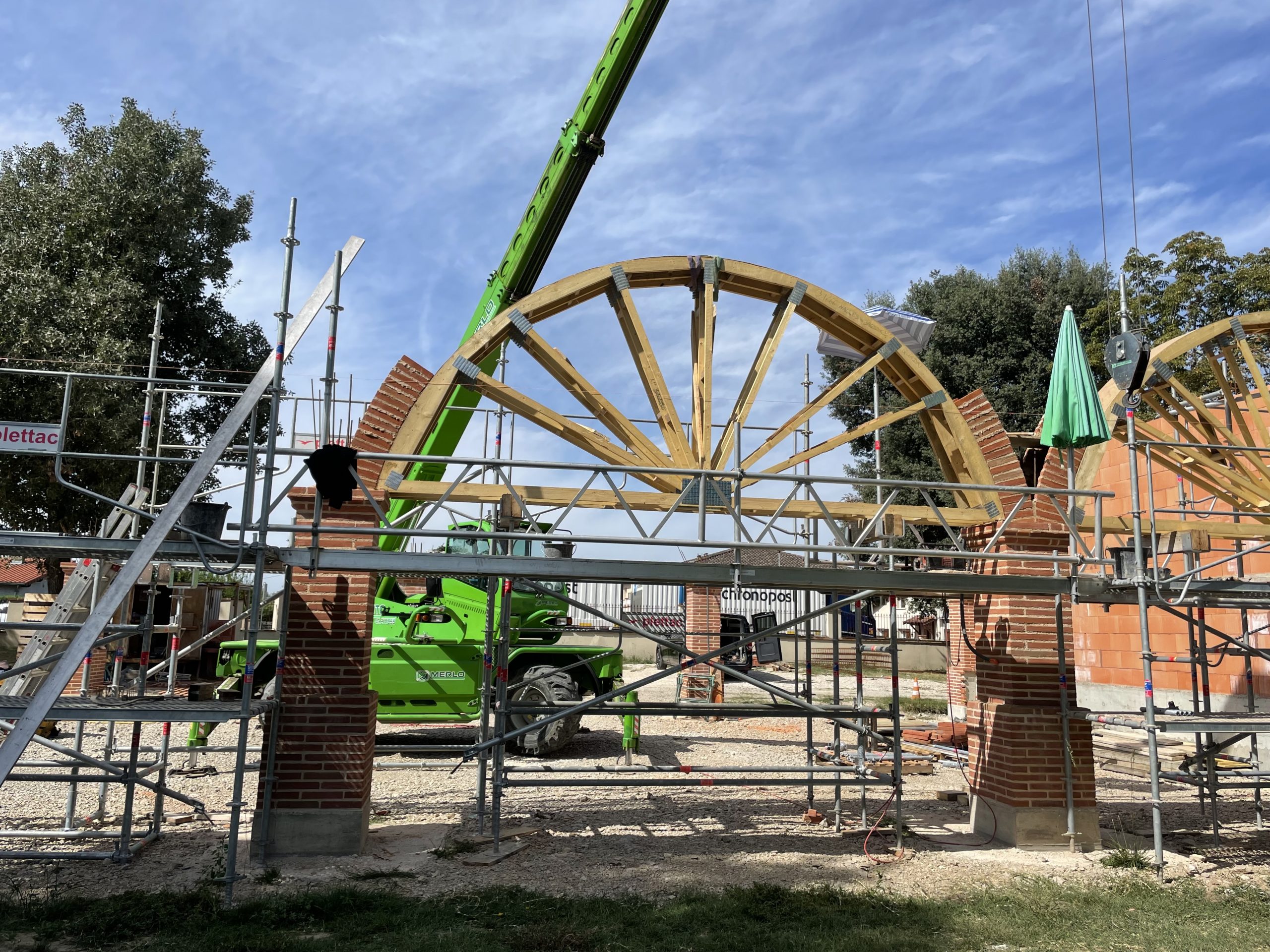 L’entreprise QUADRI a relevé le défi de construire en son intégralité une halle couverture de façon traditionnelle. Les poteaux, les voutes, les corniches ont été bâties dans les règles de l’art, briques par briques à la chaux. La charpente est, elle aussi traditionnelle, coiffée de tuile canal.