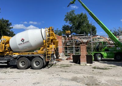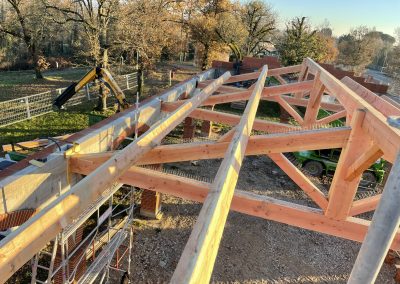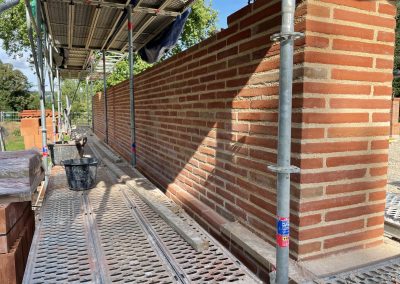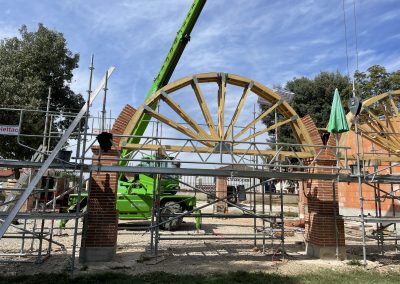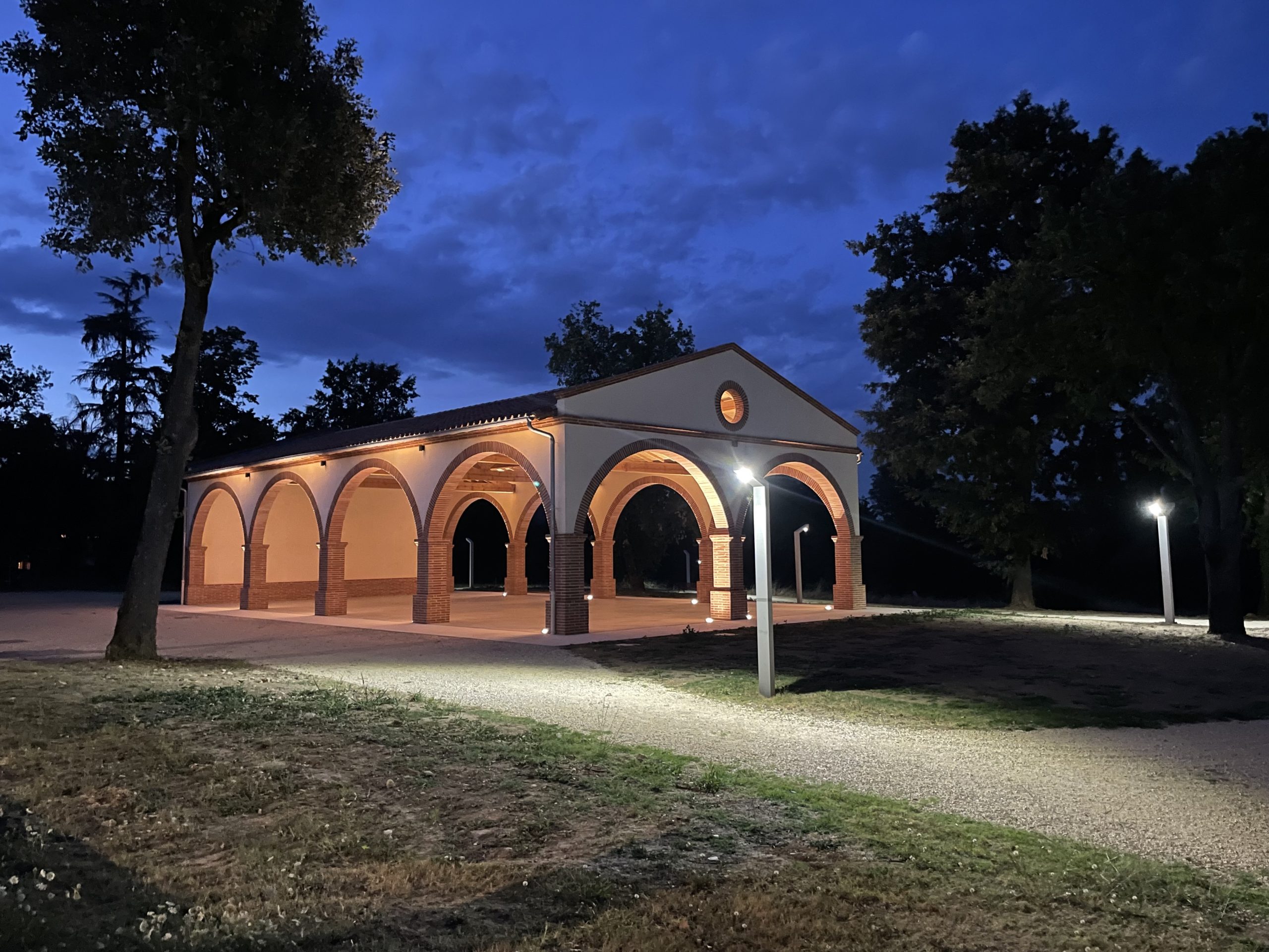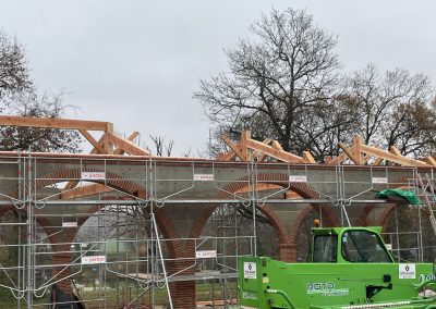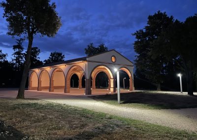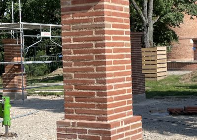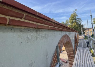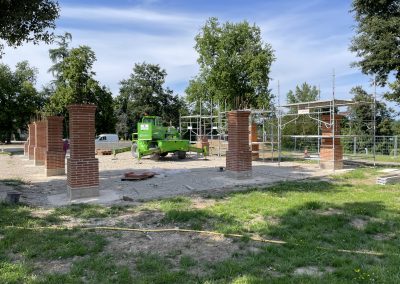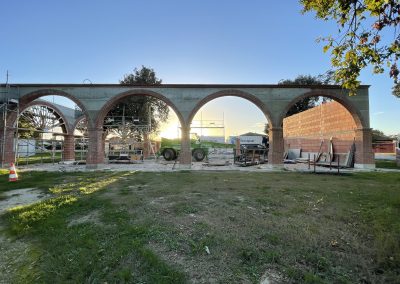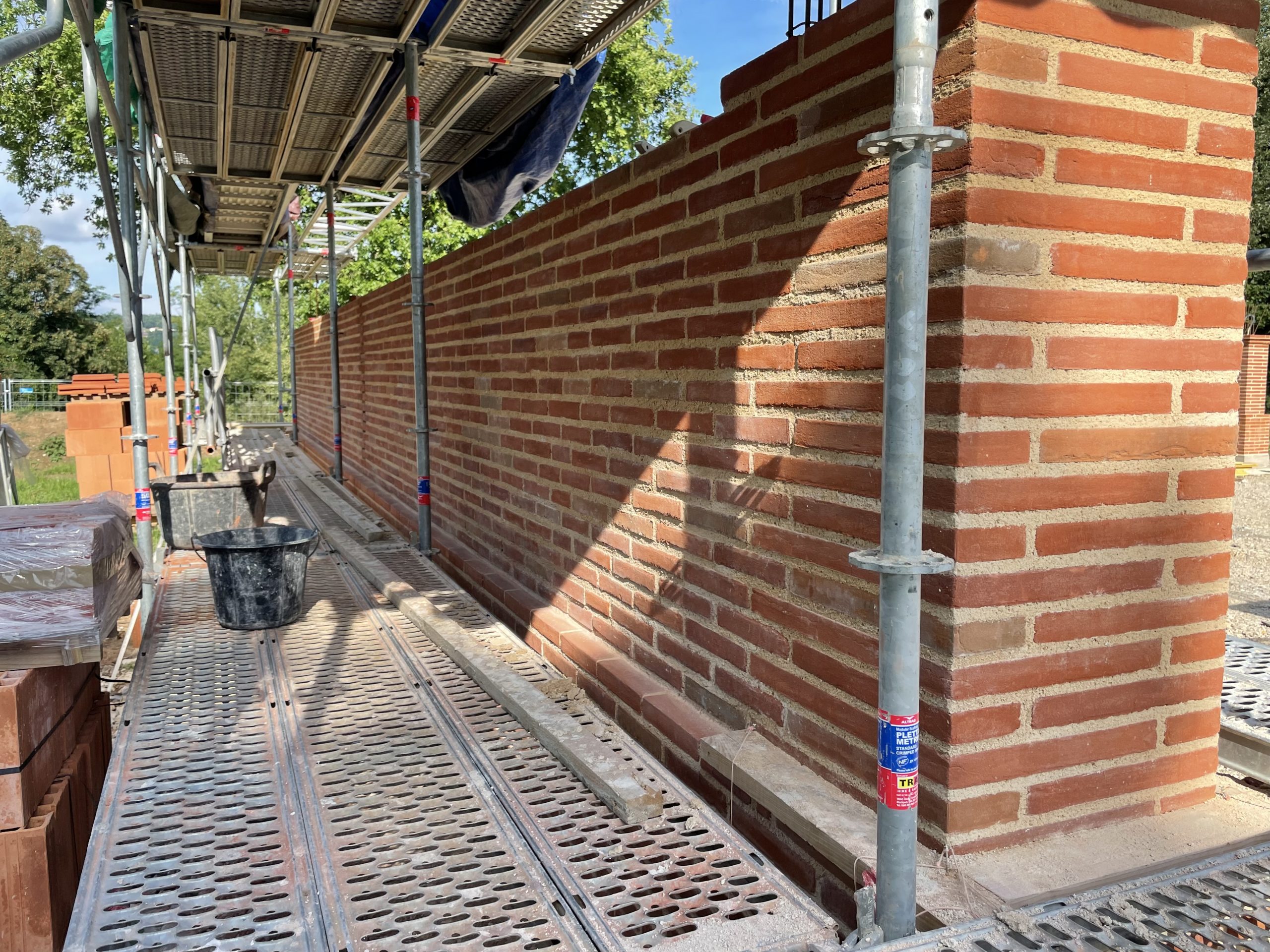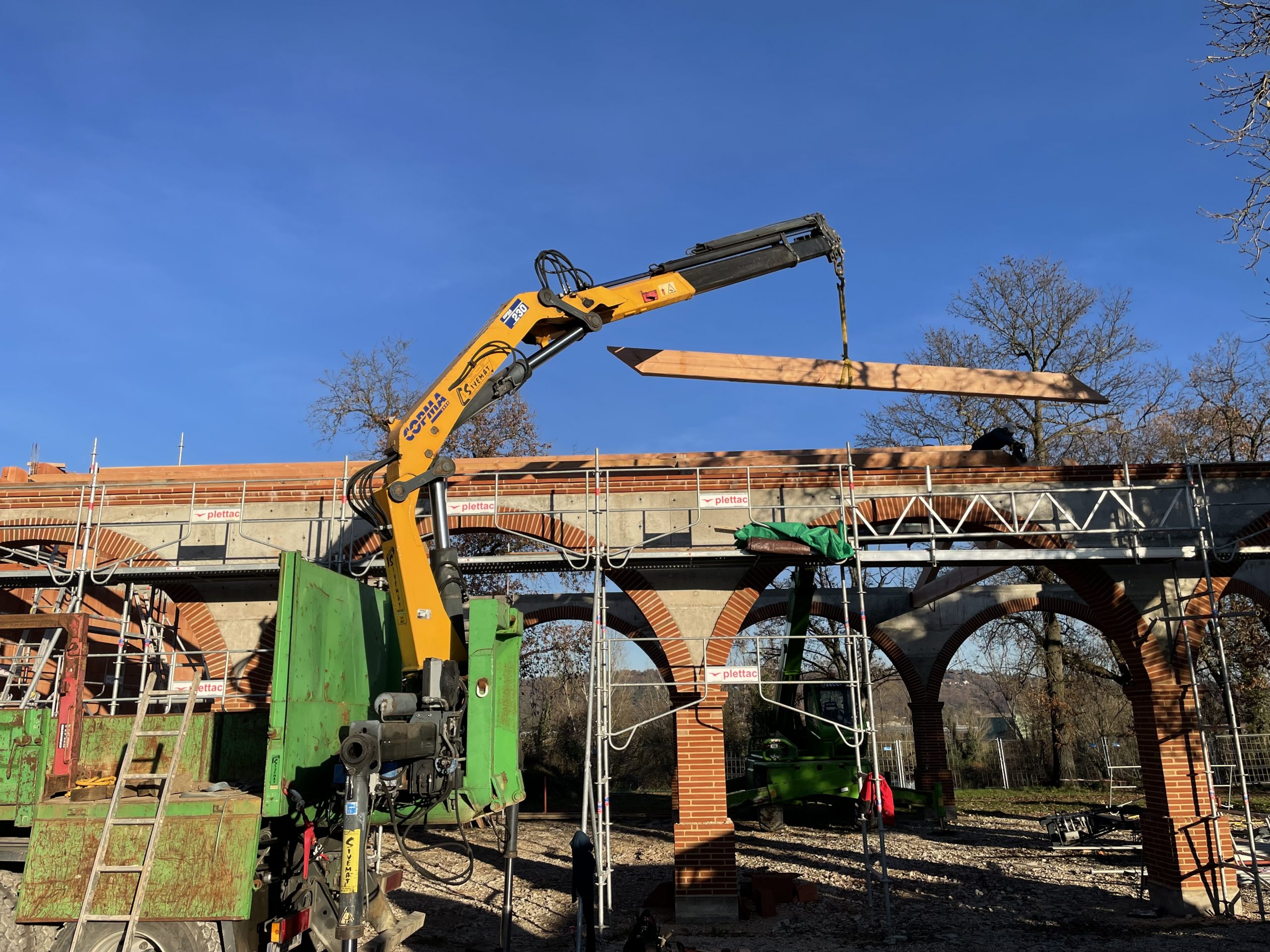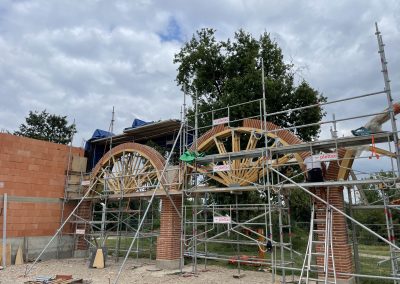 L’entreprise QUADRI a relevé le défi de construire en son intégralité une halle couverture de façon traditionnelle. Les poteaux, les voutes, les corniches ont été bâties dans les règles de l’art, briques par briques à la chaux. La charpente est, elle aussi traditionnelle, coiffée de tuile canal.
